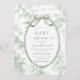 Elegant Vintage Floral Toile Frame Green Bow Baby Shower Invitation