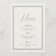 This elegant wedding menu features a soft ivory front with refined typography and a delicate double-line frame, paired with a subtle sage green floral pattern on the reverse side. Inspired by romantic garden weddings, this design blends timeless minimalism with vintage botanical charm.