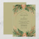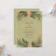 This design features a muted sage green backdrop adorned with lush botanical arrangements. Earthy peach roses and ranunculus are nestled among vibrant green foliage and delicate copper-toned leaves. A thin metallic copper accent adds a touch of elegance to the rustic aesthetic, creating an organic and woodland-inspired feel.