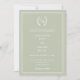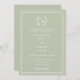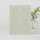 A soft sage green colored background decorated with a hand drawn wreath. White colored frames and text. Personalize and your monogram initials, names and details.