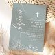 Invitation Sage Poussiéreux Baptême Élégant Écriture Florale