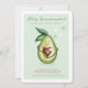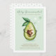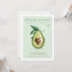 Célébrez vos amis ou proches qui arrivent à la naissance de leur nouveau petit garçon spécial avec notre petit garçon adorable et mignon Avocado sur le thème "Saint Guacamole Un bébé garçon est en route", Invitation baby shower. Le design présente notre personnage d'avocat peint à la main en aquarelle caressant une graine d'avocat en forme de coeur avec un visage doux et souriant. Le design moderne minimaliste et épuré en vert menthe, associé à des coeurs d'aquarelle simples, crée un design magnifique et doux. Toutes les illustrations contenues dans notre invitation à baby shower de bébé enfant avocat sont dessinées à la main par Moodthology.