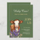 Cette adorable invitation d'anniversaire pour votre enfant est parfaite si votre petit amoureux des animaux de ferme. La délicate couleur vert olive rustique, parfaitement combinée avec une aquarelle illustration d'une vache aux yeux doux debout devant la lavande. Parfait pour une fête d'anniversaire à thème