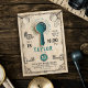 Immergez-vous dans l'excitation d'une soirée rétro de résolution de mystère de la salle d'évasion avec notre invitation exquise. Avec un arrière - plan en papier vintage orné d'illustrations complexes de clés gravées, de papillons de nuit, de papillons et d'une loupe, cette invitation donne le ton parfait pour votre événement. La pièce centrale présente une déchirure turquoise en forme de clé pour l'intrigue supplémentaire. Customisez le texte turquoise bleu et noir pour ajouter une touche personnelle, et profitez de l'élégante face arrière bordeaux pour une finition classique. Invitation vos invités à une aventure inoubliable imprégnée de charme vintage et d'intrigue!