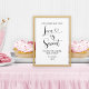 Le signe de faveur de mariage comporte la citation "La vie peut être salée mais l'amour est doux" dans le script de calligraphie moderne avec des accents de coeur, signé avec le message "Merci d'être venu, prenez un gâteau" du couple marié et marié. Les couleurs noir et blanc peuvent être modifiées.