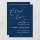 Annoncez votre bonheur à jamais avec style grâce à notre carte d'invitation à la célébration de la douche nuptiale moderne Navy Blue (Cheers to love). Avec son design sophistiqué et ludique, cette invitation vous donnera le ton pour un événement inoubliable. La carte d'invitation présente un design de script romantique minimaliste moderne, ajoutant une touche d'élégance intemporelle à votre célébration. Conçu par TeeshaDerrick