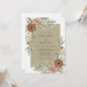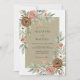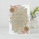 This design features a serene blend of sand and taupe tones accented by organic watercolor florals. Lush dusty rose and rust-colored roses are paired with sage green eucalyptus leaves and delicate white blossoms. It creates a natural, earthy aesthetic perfect for a desert or autumnal outdoor event.