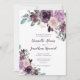 Fleurs d'aquarelle rustique en sangria et invitations de mariage mauve floral. Les zones de texte sont faciles à personnaliser avec vos propres informations. Le texte est un mélange de polices de calligraphie modernes et ornées. Le dos de la carte est de sangria violet foncé.