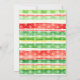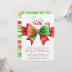 Red and green bow, Santa hat and snowflakes Christmas Santa Baby shower invitation. This festive Christmas baby shower invitation is adorned with a prominent, impressive red and green bow covered with snow and with a snowflake at its center and a Santa hat. The phrase "Santa Baby" is written in script and decorative typography. The reverse includes a playful pattern of varying red and green stripes, interspersed with charming snowflakes and snow.
