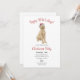 These customizable Christmas party invites feature a watercolor style portrait of a golden doodle wearing a santa hat.