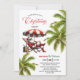 A funny Christmas design with Santa sitting under a beach umbrella! You can personalize this invitation with your own details.