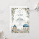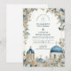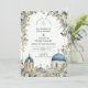 Inspired by the iconic white architecture and blue domes of Santorini, this elegant wedding design features hand-painted Mediterranean florals and soft botanical accents. The airy composition, muted coastal blues, and refined greenery create a timeless destination wedding aesthetic that feels romantic, elevated, and effortlessly European. Perfect for couples planning a Greek island, coastal, or Mediterranean-inspired celebration with a classic yet artistic touch.
