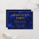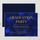 Invitation chic à la fête de remise des diplômes avec les mots "Graduation Party" en faux feuille d'or contre un saphir bleu bokeh motif arrière - plan. L'invitation a un arrière - plan bleu foncé à l'arrière. Personnalisez cette invitation avec vos détails en remplaçant le texte de l'espace réservé. Pour plus d'options comme changer la police, la taille/la couleur du texte ou l'espacement entre les lettres, cliquez sur le bouton "Personnaliser". *Veuillez noter que le filigrane Zazzle qui apparaît dans l'aperçu du zoom n'apparaîtra PAS sur le produit imprimé final. © Bois de rose et agrumes