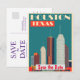 Donnez le ton sophistiqué de votre mariage avec cette invitation de Houston qui présente une architecture moderne élégante et une palette de couleurs sarcelle fraîche. Cet art touristique de haute qualité mélange l'esprit d'aventure avec un style intemporel pour annoncer votre grand jour.