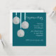 Invitation à une fête de Noël à la maison côtière. Dollars de sable suspendus sur un fond de couleur sarcelle foncée avec du texte blanc cassé. Cartes carrées modernes livrées avec des enveloppes blanches, et les dollars de sable peuvent être enlevés pour montrer des ornements traditionnels si votre fête n'est pas tropicale.