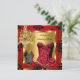 Fête d'anniversaire rouge, lustre doré élégant et haut de gamme, chaussures à talons hauts rouges et corset, rose avec dentelle noire, ornement doré élégant pour fête d'anniversaire ou enterrement de vie de jeune fille. Carton d'invitation élégant pour fête d'anniversaire 20e, 25e, 30e, 40e, 50e, 60e, 70e, 80e, 90e. Personnalisez avec vos propres détails. Réponse RSVP disponible. Fête d'anniversaire. Événements élégants et fabuleux pour femmes, filles, invitations pour fêtes de tous âges, il suffit de personnaliser à l'âge souhaité ! Modèle d'invitation pour fête d'anniversaire. Personnalisez avec vos propres détails et âge.