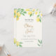 Carte de sauvegarde de date de mariage fraîche et romantique avec des citrons aquarelles et du feuillage vert encadrant vos détails de mariage sur un fond ivoire chaud. Le devant met en valeur vos noms et la date du mariage dans une typographie élégante, parfaite pour les célébrations de citrus, de jardin, italiennes ou estivales. Au dos, une bordure de citron assortie et un espace d'initiales en forme de coup de pinceau encadrent votre photo de fiançailles ou de couple, donnant aux invités un aperçu personnalisé de votre journée.