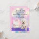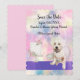 Carte "Sauvegardez la date" pastel avec un gâteau illustré et un joli chien blanc qui fera également partie du cortège de mariage. Merci à Desicn Cuts et Creative Fabrica pour certains éléments du design.