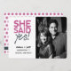 Choisissez cette photo élégante enregistrer la date de PiPo Press. Il comporte un message audacieux dans une police blanche, moderne, toute casquette en rose chaud avec un "oui" manuscrit! en gris. Lorsque vos invités recevront cette carte de 5" x 7" aux angles arrondis, ils sauront exactement à quel point votre célébration sera spéciale.