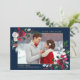 Bleu Marine | Burgundy Red Bloom Watercolor Peinture avec cadre d'huile d'or personnalisé Mariage d'hiver Enregistrer la date Carte photo. Customisez le nom, la date et l'emplacement de vos annonces Mariages. Invitations de mariage, Invitations de douche nuptiale, Enregistrer les cartes de date, Cartes de voeux à demander, Cartes de remerciements, Faveurs de mariage et Cadeaux disponibles dans la catégorie design floral de notre magasin.
