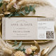 Take your guests on a stylish journey before your big day with our elegant and minimal Save the Date boarding pass plane ticket. This modern design features a clean layout with your save the date details displayed in authentic plane ticket format, accented with a charming plane seal and a scannable QR code for guests to access additional wedding information. The reverse side features a contemporary abstract heart design, with your names elegantly displayed at the center, creating a cohesive and memorable keepsake. Perfect for couples planning a travel-themed or destination wedding, this Save the Date combines sophistication, personalization, and wanderlust-inspired charm—making a lasting impression from the moment it arrives. Design and layout by ©Moodthology Papery