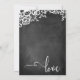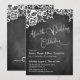 Cette carte de réception de mariage élégante mais rustique présente un graphique de fond de tableau noir texturé surmonté d'un panneau d'angle en dentelle blanche élégante. J'ai utilisé une police de caractères script moderne élaborée pour rendre les graphiques représentant les mots "Après la célébration de mariage" sur le devant et "amour" sur le dos. Votre propre texte est facilement ajouté pour personnaliser ce design autant ou aussi peu que vous le souhaitez. Utilisez les champs de modèle pour simplement entrer vos informations personnelles, et cliquez pour personnaliser davantage si vous souhaitez repositionner l'une des couches déverrouillées ou modifier davantage le design selon vos préférences personnelles. N'hésitez pas à me contacter pour des demandes spéciales ou pour obtenir de l'aide pour la personnalisation.
