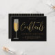 Voici une invitation de fête de cocktail moderne à l'écriture noire et dorée, le moyen idéal pour inviter vos invités avec style ! Cette invitation élégante présente un fond noir épuré avec un verre à cocktail de champagne doré et une écriture cursive, créant un look chic et sophistiqué qui ne manquera pas de faire impression. Que vous planifiez une fête de cocktail, une célébration d'anniversaire ou que vous souhaitiez simplement ajouter une touche de glamour à votre événement, notre invitation est le choix idéal.