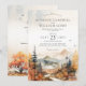 Personnalisez cette élégante invitation de mariage tout-en-un au design aquarelle rustique de la forêt automnale de montagne, avec des teintes douces d'orange terracotta, d'or, de brun et de vert, ainsi que des détails en écriture simple sur le devant, et votre code QR et site web de mariage au verso pour que vos invités puissent répondre numériquement pour votre grand jour. Ajoutez facilement votre texte et site web de mariage pour personnaliser le code QR et le rendre unique. Commandez des impressions + enveloppes, et/ou le téléchargement numérique instantané - parfait pour les e-invitations, ou pour imprimer à la maison ou envoyer à l'imprimerie de votre choix. Les demandes de conception personnalisées, les ajouts de produits à la collection et les questions sur les modèles sont toujours les bienvenus - cliquez sur le bouton "message", ou envoyez un e-mail directement : contact@figandlilyco.com. La conception est