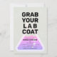 Ce cool "attrape ton manteau de laboratoire" science anniversaire d'expérience invitation pour les filles met en vedette un arrière - plan gris clair avec une fiole. L'envers est composé d'un arrière - plan rose avec des motifs moléculaires. Personnalisez-vous pour répondre à vos besoins. Vous pouvez trouver des produits correspondants dans mon magasin.