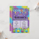 Cette carte d'invitation colorée est parfaite pour une fête d'anniversaire à thème scientifique pour les enfants. Le design saisit l'essence d'une fête scientifique thématique avec sa représentation de liquides colorés dans quatre verres stylisés avec des bulles. Il crée une ambiance amusante, joyeuse et scientifique pour votre événement.