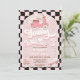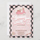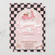 Retro Scooter Pink Young Wild and Three 3rd Birthday Invitation de style rétro troisième anniversaire pour une fille avec un scooter, marguerites, skateboard, patins à rouleaux, damier ondulé et non modifiable retro style cap.