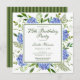Cette hydrangée bleue 75ème anniversaire invitation est fantasque et stupéfiant! Avec ses hydrangées bleues multicolores, sa verdure naturelle agitée et ses rayures vertes coordonnées, il est parfait pour votre bien-aimé qui a 75 ans. La police de script est moderne mais classique! En sélectionnant Personnalisez ce modèle et en tapant vos informations, vous pouvez voir vos magnifiques invitations en quelques secondes!