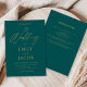 Invitation vos invités avec tout cela dans une seule invitation turquoise de script mariage or vert. Doté d'un riche arrière - plan vert turquoise, d'une élégante typographie de script doré et d'un tout moderne en un seul format, ce design allie élégance intemporelle et style tonique bijoux audacieux. Parfait pour les mariages de automne, les fêtes d'hiver ou les couples qui veulent un design unique et élégant de papeterie de mariage. Customisez avec vos détails pour un maintien durable.