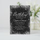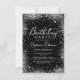 Parties scintillant moderne en argent élégant et noir 30ème anniversaire invitations de fête. Ce design de carte de fille adulte présente un script de calligraphie écrit à la main, sur arrière - plan noir avec cadre de parties scintillant de glam autour. Facile à personnaliser, parfait pour tout âge.