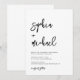 Ce faire-part de mariage présente un design de calligraphie capricieux avec une sensation ludique et informelle. Le script loopy et le lettrage créatif ajoute une touche de fantaisie, parfait pour un couple à la recherche d'un moyen non traditionnel et léger d'invitation leurs invités à leur journée spéciale. La séparation claire des sections assure que tous les détails importants sont faciles à trouver.