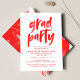Invités Invitations pour célébrer la grade avec nos invitations modernes de la fête de graduation! Les invitations branchées à la fête de remise de diplômes comportent une "grande fête" dans une police de pinceau peinte en rouge. Personnalisez les invitations créatifs de la fête de remise de diplômes en ajoutant le nom du diplômé, le nom de l'école, l'année de remise de diplômes et les détails de la fête de remise de diplômes. Les invitations s'inversent pour afficher un dessin de brosse rouge et blanc.
