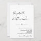 Elégant script de charme intemporel noir et blanc cartes faire-part de mariage. Améliorez votre célébration avec un design sophistiqué de typographie noire, oré d'une police de script de calligraphie chic et d'un accent de coeur d'amour dessiné à la main. Personnalisez l'invitation avec un texte personnalisé simple et élégant, y compris les noms du couple et tous les détails essentiels de la cérémonie de mariage. Profitez d'une atmosphère chaleureuse et accueillante pour que vos invités partagent la joie de votre journée spéciale. Commandez dès maintenant et faites de votre fête mariage une fête vraiment inoubliable !