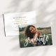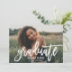 Célébrez dans le style avec une invitation de fête de fin d'études moderne présentant une photo à fond perdu et un script « diplômé » surdimensionné sur le devant. Une typographie propre et minimaliste met en valeur le nom du diplômé et l'année de promotion sans détourner du portrait. Le verso présente des détails d'événement nets dans une tonalité or élégante. Personnalisez tout le texte et la photo.