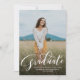 Ce traitement moderne et audacieux du mot "diplômé" encadre parfaitement votre photo verticale senior. Une façon classique d'annoncer le prochain diplôme de votre senior, cette conception offre beaucoup de place pour le texte personnalisé. Le dos est un noir neutre avec un motif blanc subtil mais la couleur peut être changée en cliquant sur "personnaliser". Il est conçu pour coordonner avec de nombreux autres articles de la collection Lea Delaveris Design où vous pouvez trouver assortis notes de remerciement, étiquettes de adresse, décoration de fête et bannières.