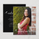 Soyez fier, réjouissez-vous et mettez en valeur cette étape importante de votre diplômé préféré ! Envoyez cette invitation de annonce de budget photo personnalisée, girly, époustouflante, simple et moderne pour un événement inoubliable. Un visuel amusant et ludique avec une écriture manuscrite blanche et des cœurs mignons et ludiques, ainsi que son nom, son année de promotion et son école, se superposent à la photo de votre choix. Personnalisez le texte personnalisé avec le nom de votre diplômé, son école et son année de promotion sur le devant. Au dos, ajoutez votre note personnelle, l'école qu'elle va fréquenter ensuite, les informations sur la fête, etc. sur fond noir. Garantie d'ajouter une touche de style amusant à leur occasion spéciale !