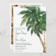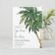 Faire-part de mariage de palmier à script vert tropical avec aquarelle illustration exotique de palmier et une élégante typographie de police de brosse. Parfait pour la fête du mariage d'été du printemps, ajoutez 3 de vos photos préférées à l'arrière.