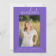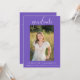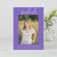 Cette élégante invitation photo sera la meilleure façon d'annoncer votre fête de remise de diplômes. Cette invitation est faite par un arrière - plan violet. Ajoutez une photo et un texte de personnaliser sur le devant et le dos pour inclure tous les détails de votre fête de remise de diplômes. Cette invitation est disponible en différentes couleurs.