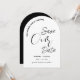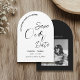 Boissons gratuites et mariage ! Un décontracté et moderne enregistrer notre invitation de date en noir et blanc simple avec typographie de script contemporain. Un drôle et minimal enregistrer la date parfaite pour un couple amusant à la recherche d'une papeterie mariage unique et non conventionnelle qui correspond à leur personnalité vibrante.