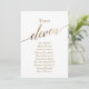 Invitation Script élégant or Tableau Numéro 11 Tableau de siè