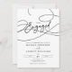 Invitation vos proches à votre fiançailles avec cette invitation minimaliste moderne en noir et blanc avec une calligraphie de script sophistiquée Nous sommes "Engagés". Cette invitation est parfaite si vous désirez de la simplicité mêlée à l'élégance.