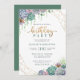 Faites de cet anniversaire un souvenir mémorable avec ces fabuleuses invitations botaniques. Ce design a un cadre géométrique doré et de magnifiques succulents dans le coin supérieur gauche et inférieur droit. En haut, il dit "fête d'anniversaire" avec "anniversaire" écrit en élégante parties scintillant or écrit à la main script style. Cliquez sur le bouton "personnaliser ce modèle" pour ajouter vos propres détails dans les zones de texte, puis prenez un moment pour parcourir les différentes formes, tailles et textures de papier disponibles.
