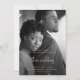 Cette élégante invitation de mariage comprend un script manuscrit moderne et faux or et votre photo personnelle préférée pour un look simple mais glamour. Le dos de l'invitation est d'une couleur noire riche.