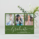 White Script Graduate 4 Photo Collage Green Graduation Invitation. Pour plus de personnalisation, cliquez sur le bouton "Customiser" et utilisez notre outil de conception pour modifier ce modèle.