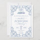 A script blue aqeeqah invitation for a baby boy with an Islamic ornate border theme. The card is easy to customize with your wording, font, font color, paper shape options, and choice of paper types. The subtle look is stunning on the front, while the blue-contrasting backside makes this akika dinner invitation truly unique.