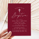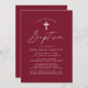 Les invitations au baptême simples comportent un script décontracté de calligraphie blanche avec un arrière - plan bordeaux pour un design parfait pour un baptême de bébé moderne. Personnalisez les élégantes invitations au baptême avec le nom de votre enfant et les détails de l'événement religieux ci-dessous. L'arrière de l'invitation au baptême bordeaux donne de l'espace pour des textes et des photos supplémentaires.